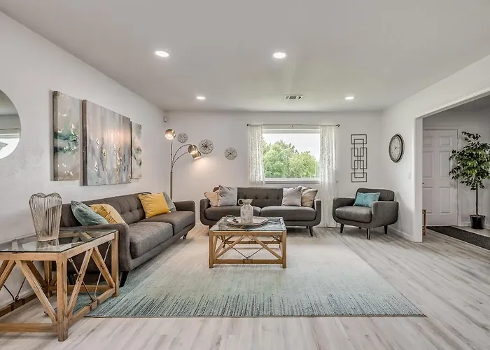 Offering a casino and a play area for guests' leisure, the 2-bedroom Okana Waterpark & Downtown Okc 7 Mins Away- Capital View Oklahoma City villa is situated around 6 km from the Centennial Land Run Monument.